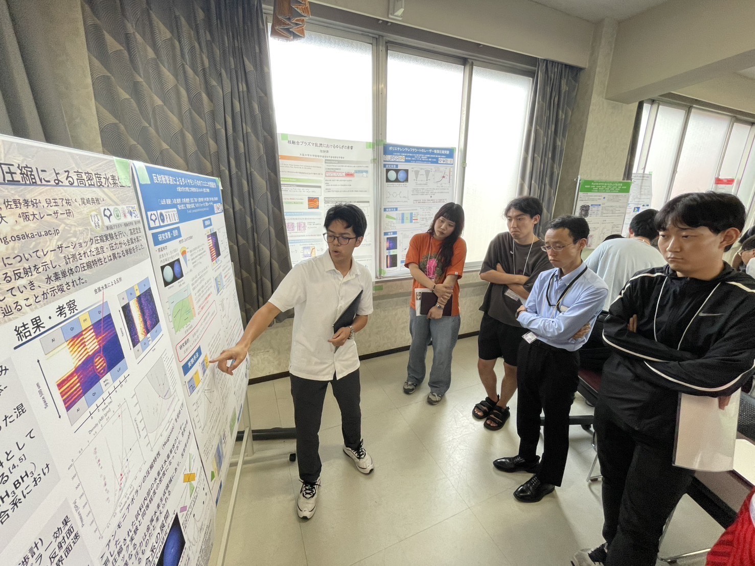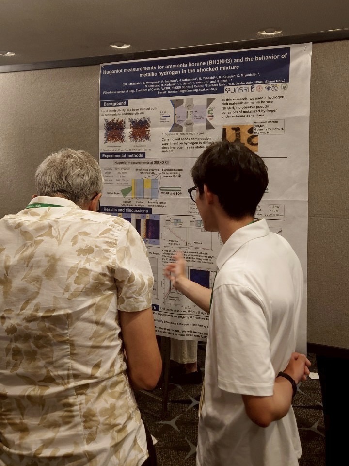 「今年2月のSACLA実験で得られた成果を領域2で発表し、有意義な議論ができました。月末から始まるAIRAPTでも発表するので活かしていきたいと思います。2日目の夜にレーザー研所属の学生で飲みに行きました。他グループの面白い話を聴けました笑。」