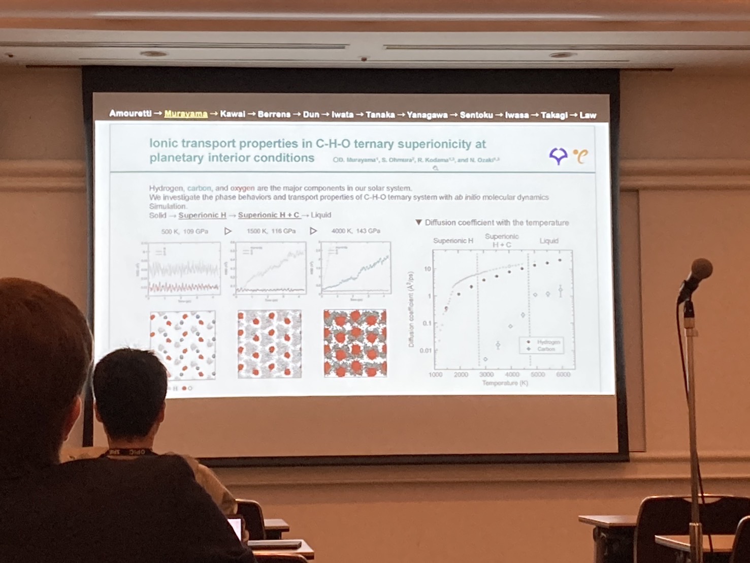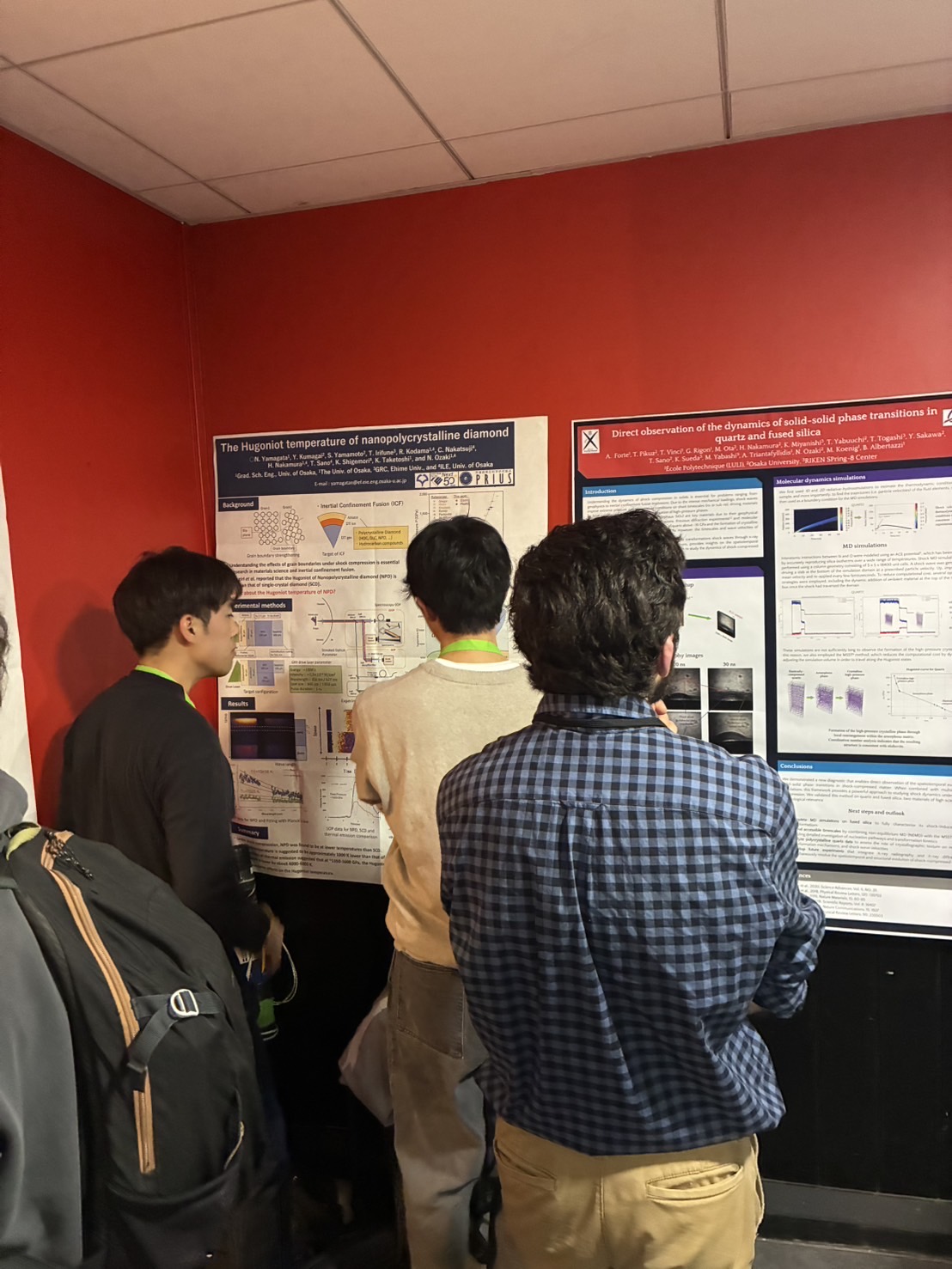 Oral sessionでは、ダイヤモンドの融解曲線に関する発表や、レーザー衝撃圧縮の最新の計測手法に関する発表等を聴くことができ、とても有意義な会議となりました。」