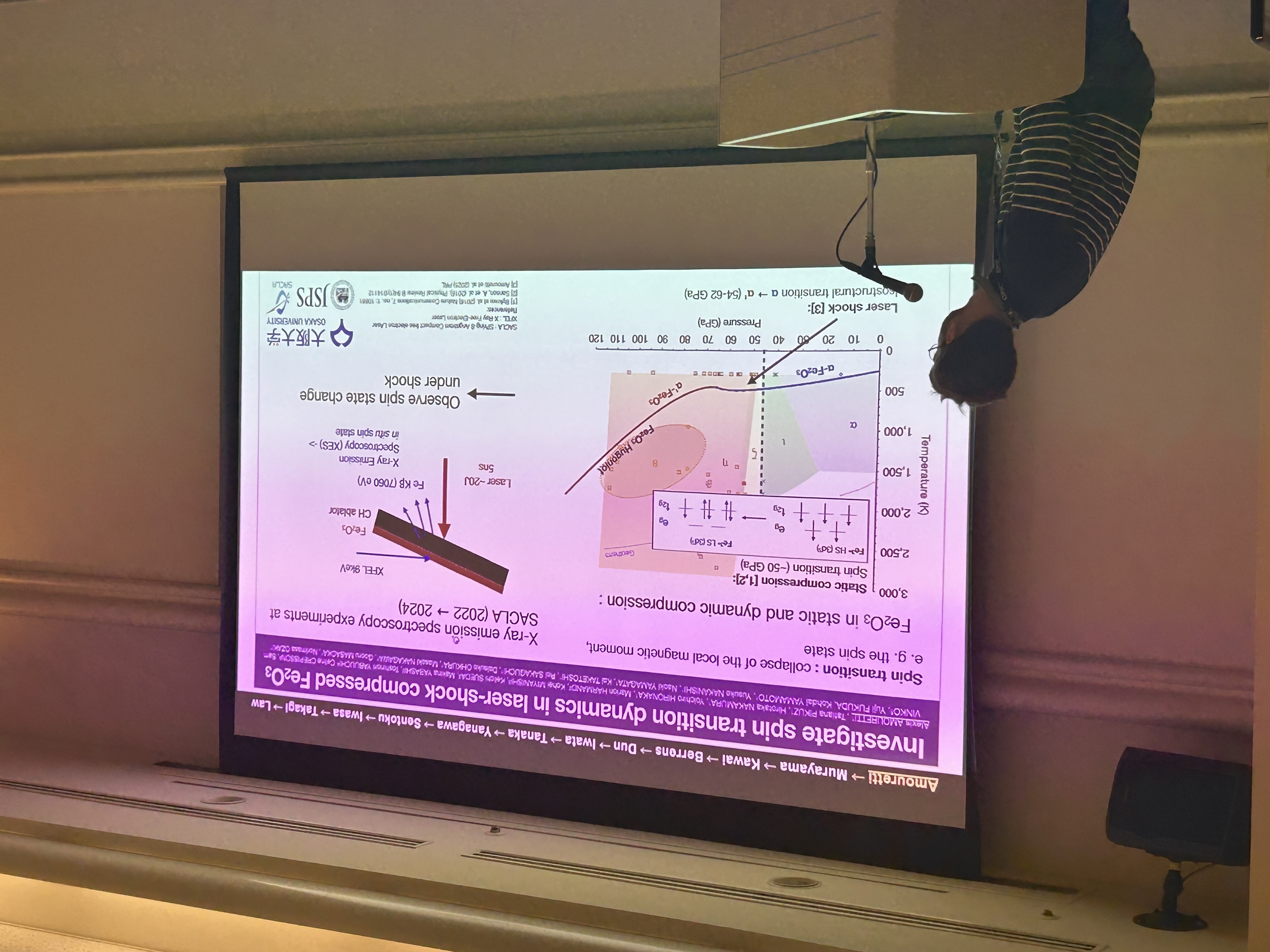 「CHOポリマーのレーザーショックその場XRD観察実験の結果をAIRAPTで口頭発表しました。英語の流暢さはなかったですが、まずまずの発表内容になったと思います。ポリマーのレーザーショック研究をしていたD. Krausに質問してもらい、アドバイスももらえました。」