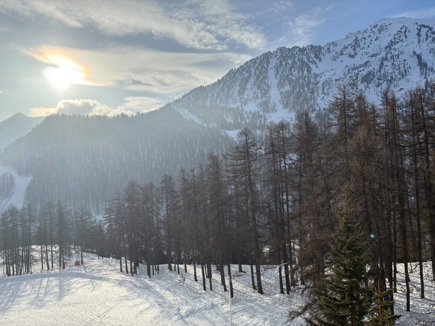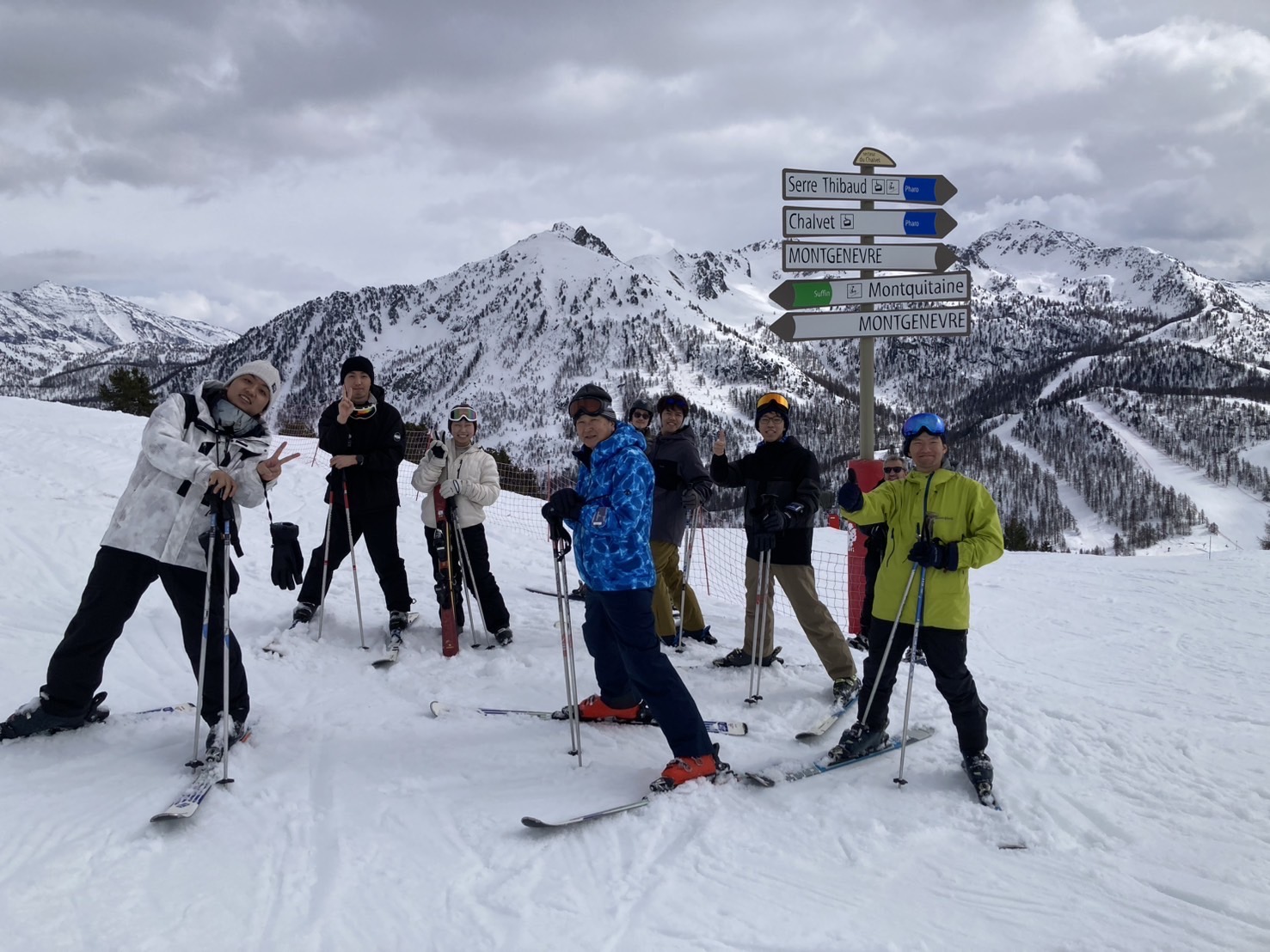 講義の隙間時間にはLFグループの木村君やQSTの福田さん等、様々な方とスキーを滑ることができ、最終的にはほとんどの山の頂上を制覇することができました。特にイタリアとフランス国境の山の頂上に行ったときは快晴で、とても景色が良かったこともあり、かなり達成感がありました。