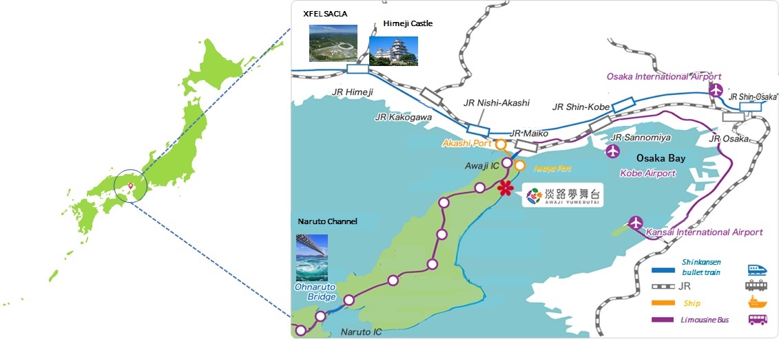 Warm Dense Matter 2023 workshop will be held at " Awaji Yumebutai International Conference Center", located at the southern part of Hyogo prefecture.Just being across the Akashi Kaikyo bridge at east coast of Awaji island, overlooking Osaka Bay.